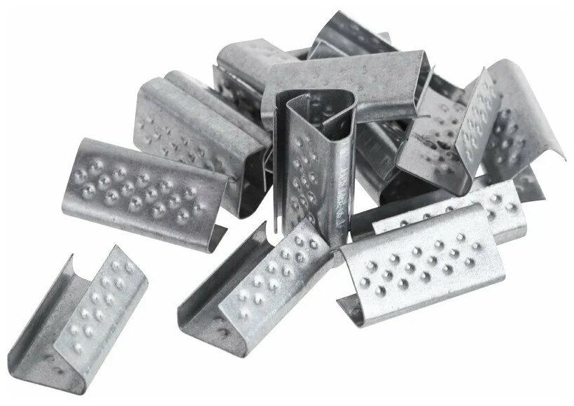 Применяется для скрепления полипропиленовой ленты ручными механизмами. Для надежного крепления на скобе выполнена перфорация в шахматном порядке.